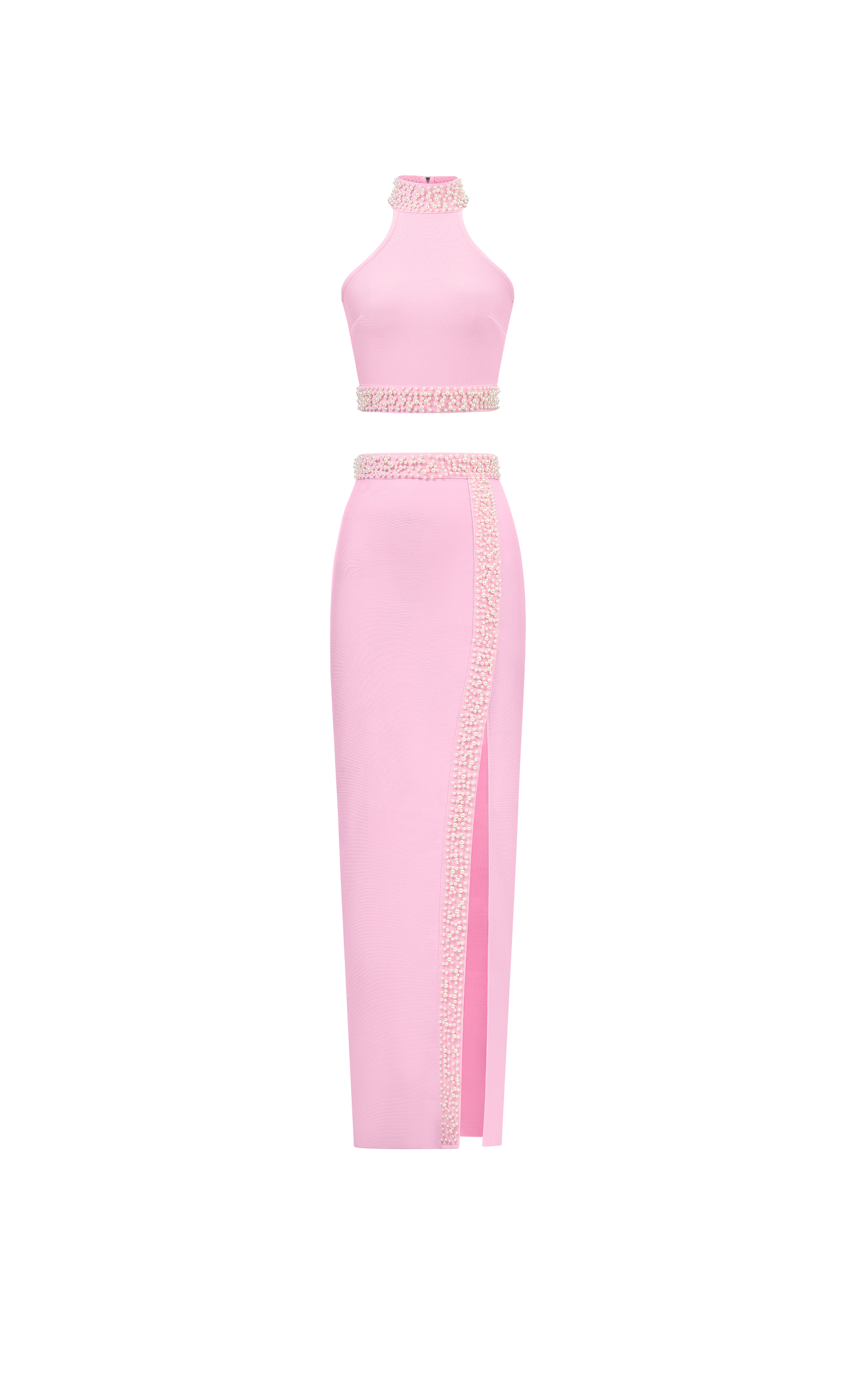 Elva Chic Contour Long Sleeve Ruched Crystal Top and Skirt Set