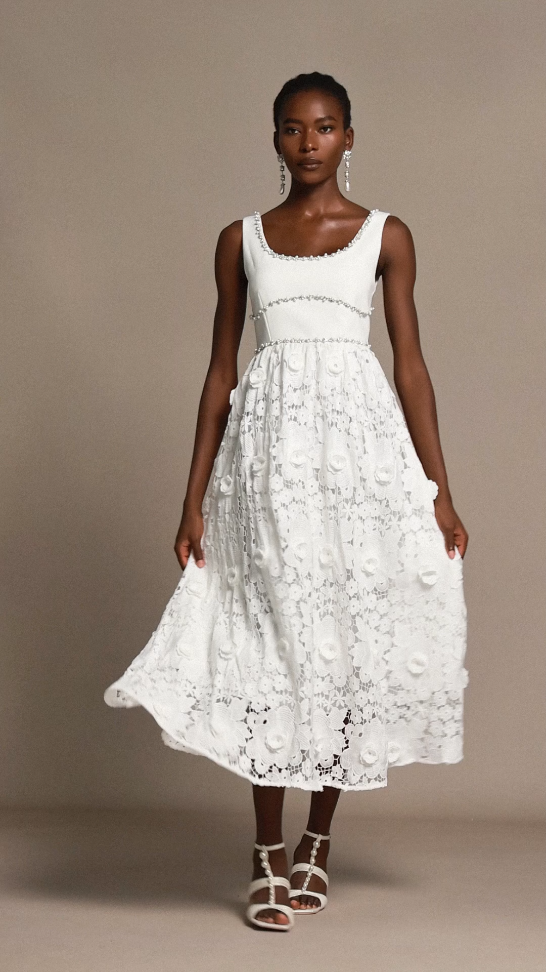 Doe Halter Diamond Lace Midi Dress