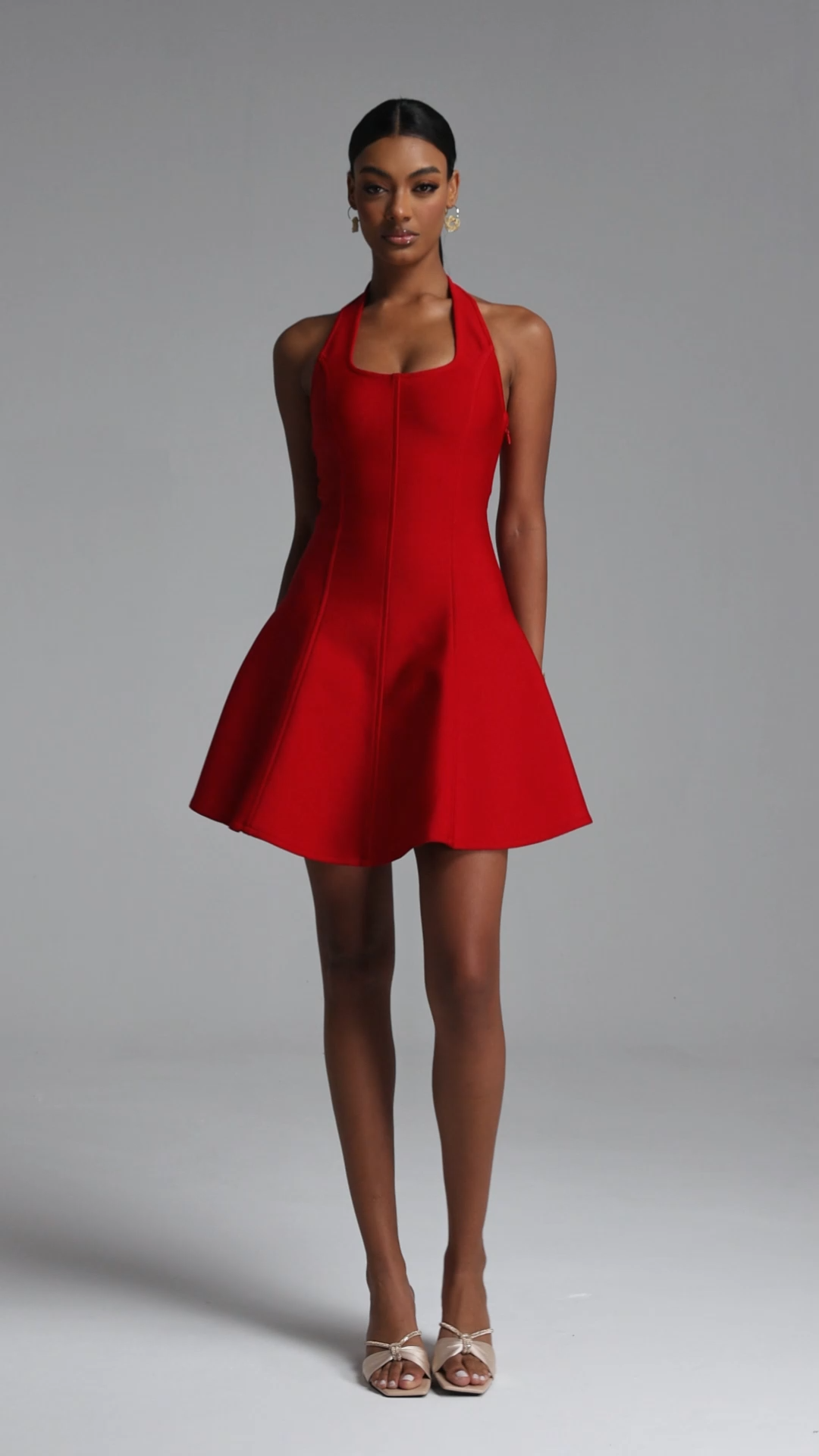 Dyani Classic Contour Halter Square Neck Bandage Mini Dress