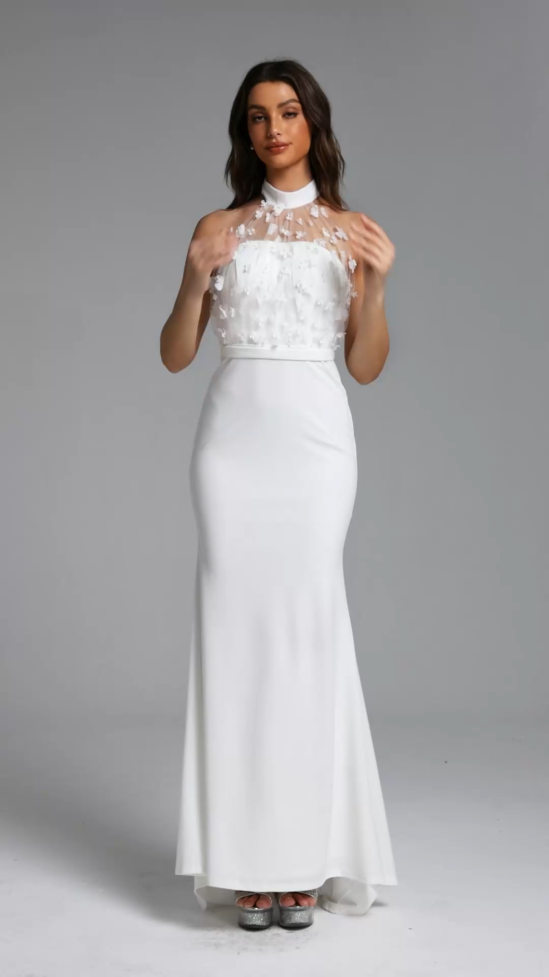 Elma Romantic Contour Halter Sleeveless Floral Maxi Dress