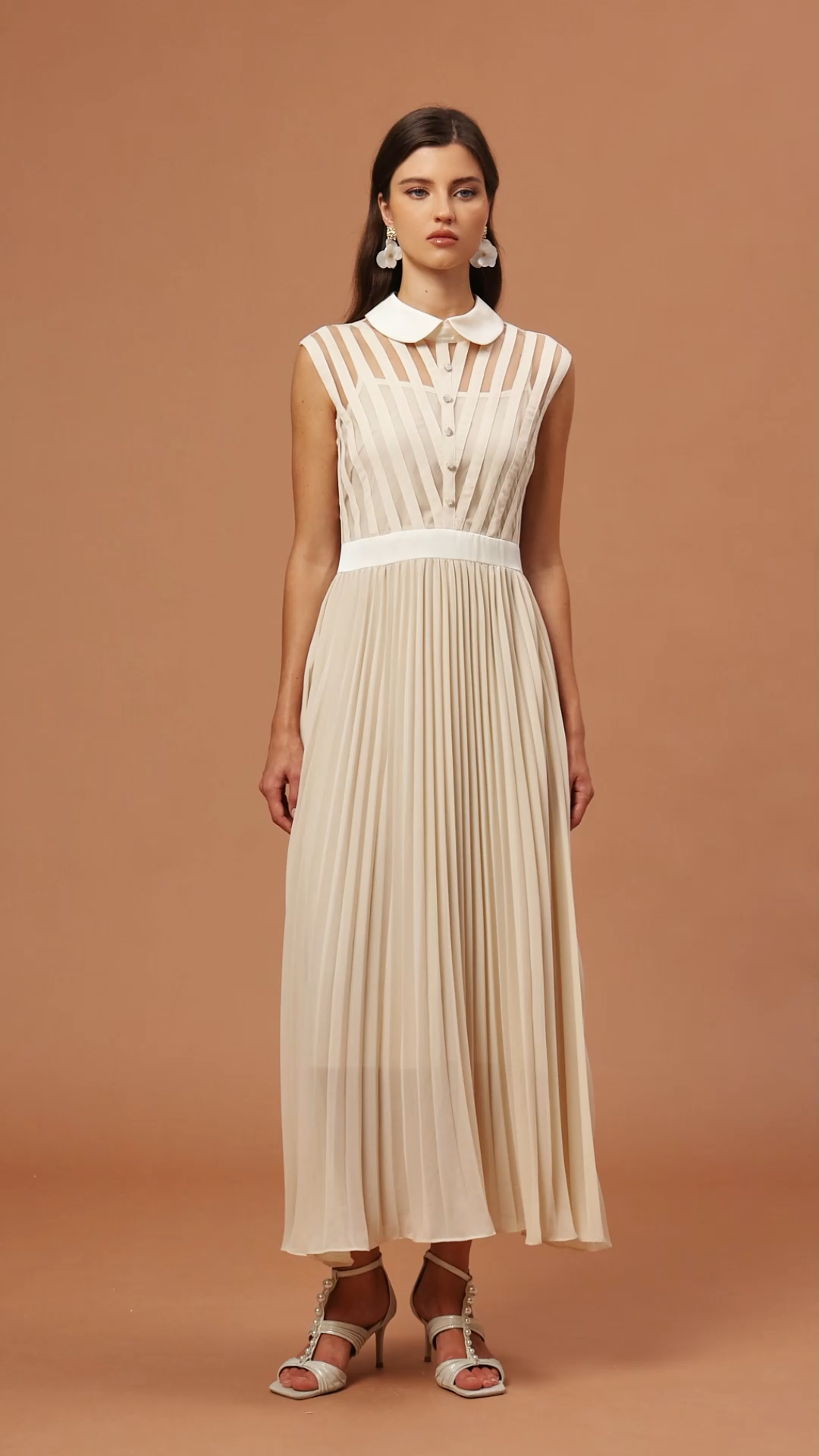 Gilda Round Neck Sleeveless Folds Maxi Dress