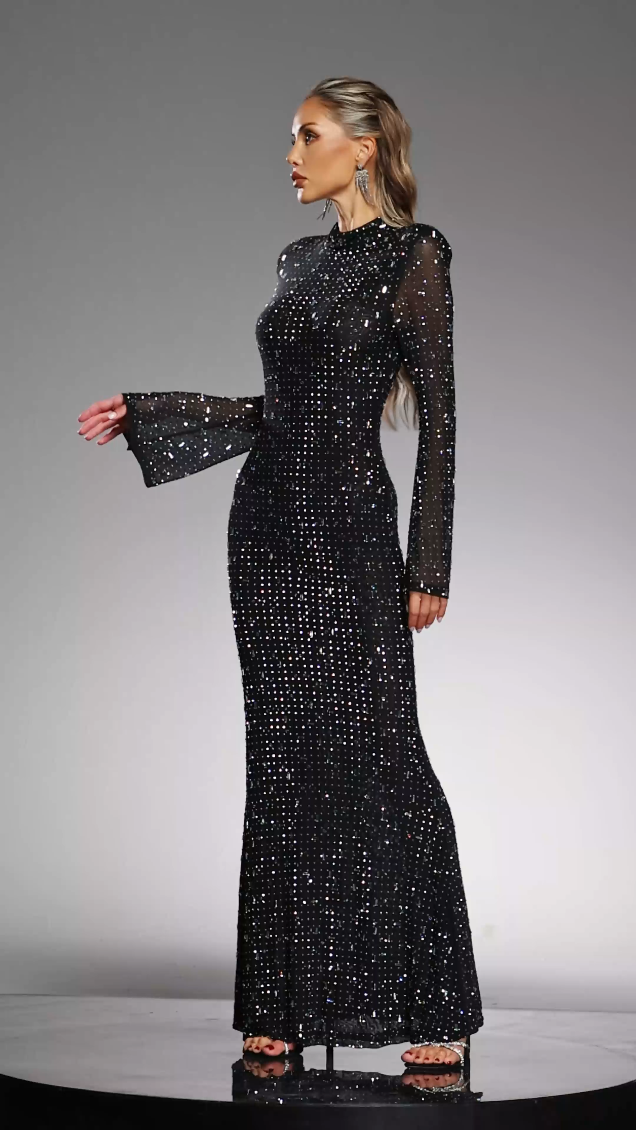 Gilian Long Sleeves High Neck Diamond Maxi Dress