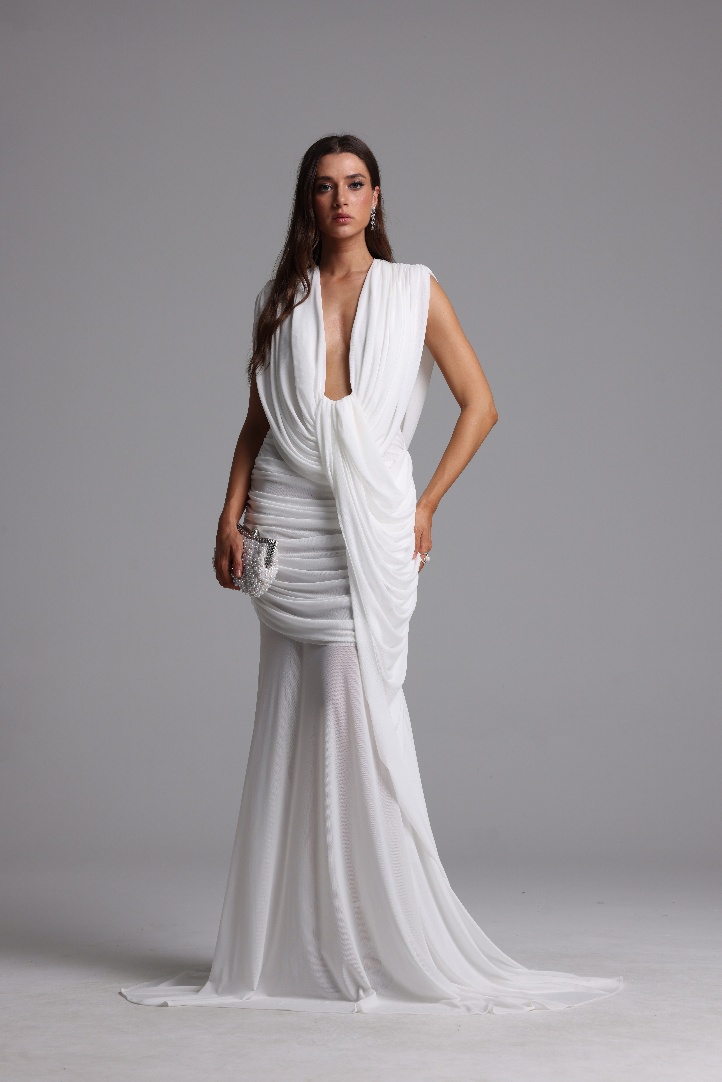 Glenda Chic Contour Ruched Drape Knit Maxi Dress