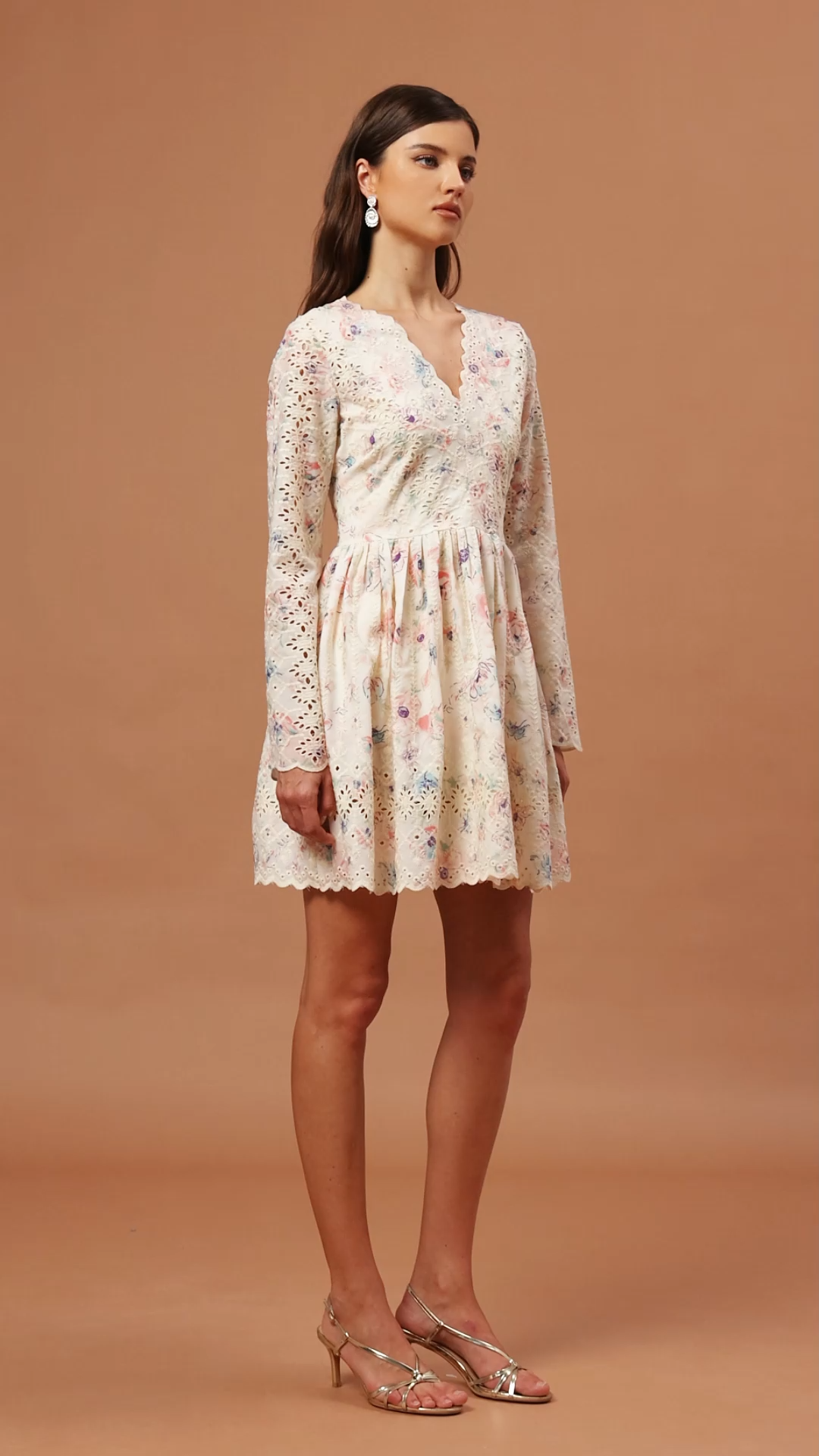 Ierra V-Neck Long Sleeves Floral Printed Lace Mini Dress