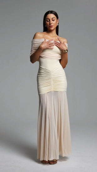 Iunne Elegant Contour Strapless Scarf Ruched Knit Maxi Dress
