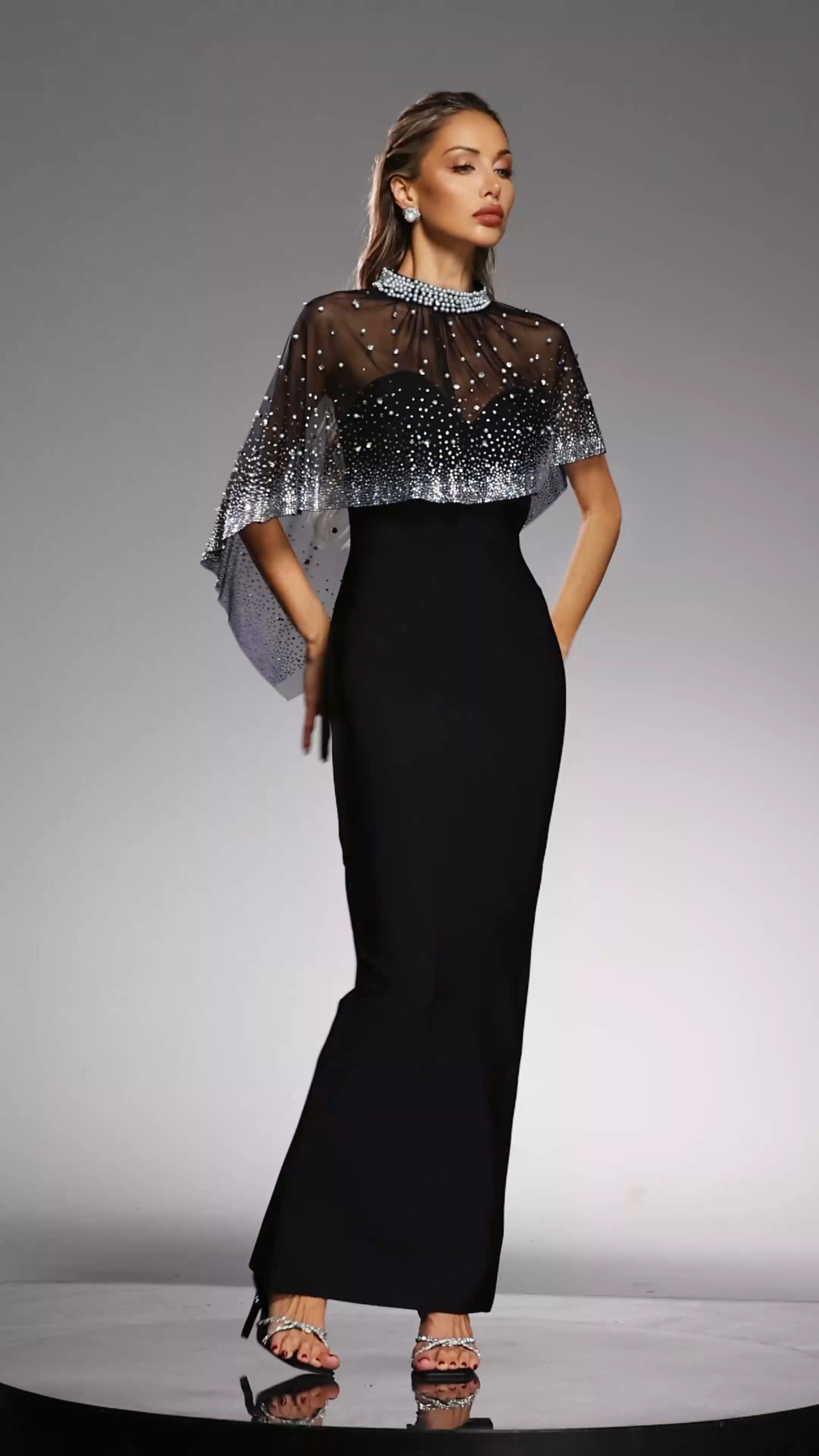 Jacey Sleeveless Diamond Pearl Bandage Maxi Dress