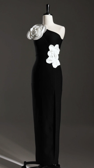 Jane Flowers High Slit One Shoulder Bandage Maxi Dress