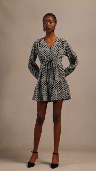 Jellay Vintage Chic V Neck Long Sleeve Chiffon Mini Dress