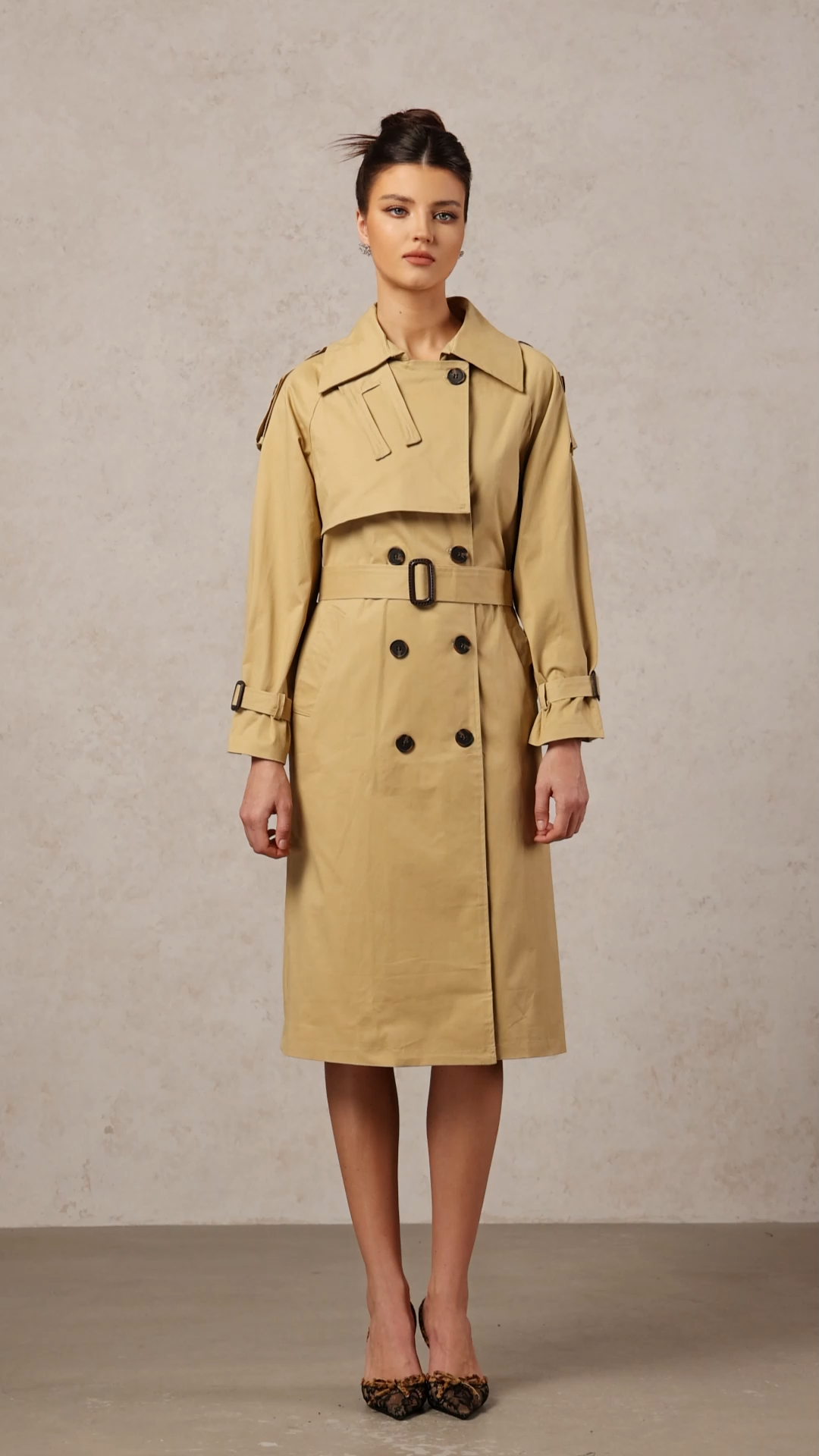 Judith Elegant Tailored Long Sleeve Woven Trench Coat