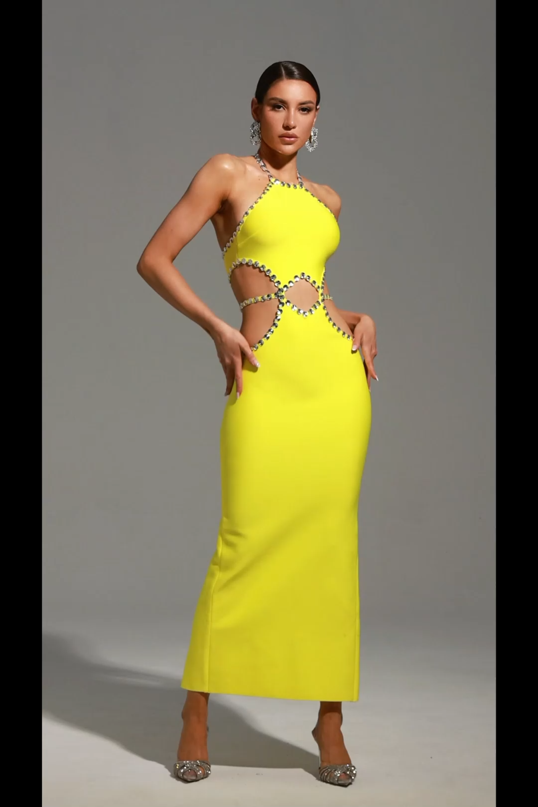 Juyce Halter Sleeveless Hollow Out Diamond Bandage Maxi Dress