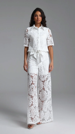 Liviya Elegant Tailored Short Sleeve Lace Top and Pants Two Piece Set