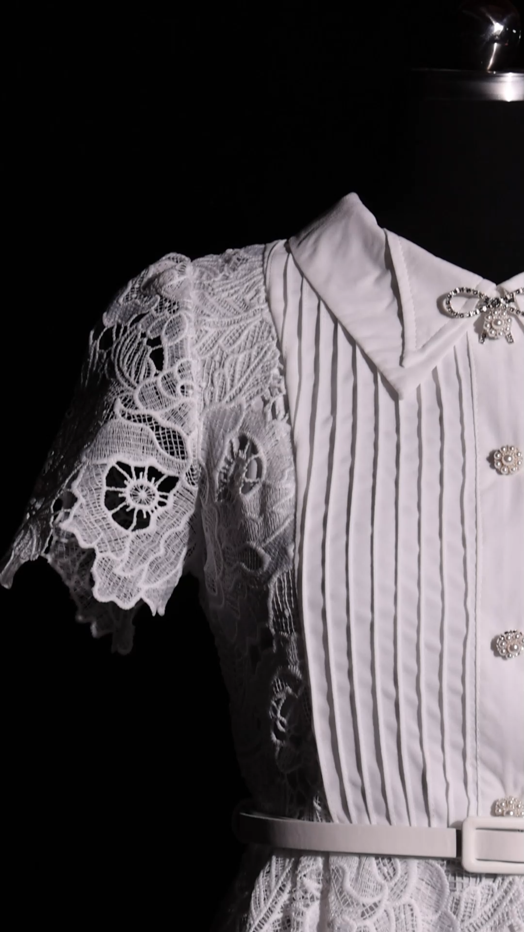 Pora Flowers Lace Short Sleeve Embroidery Midi Dress