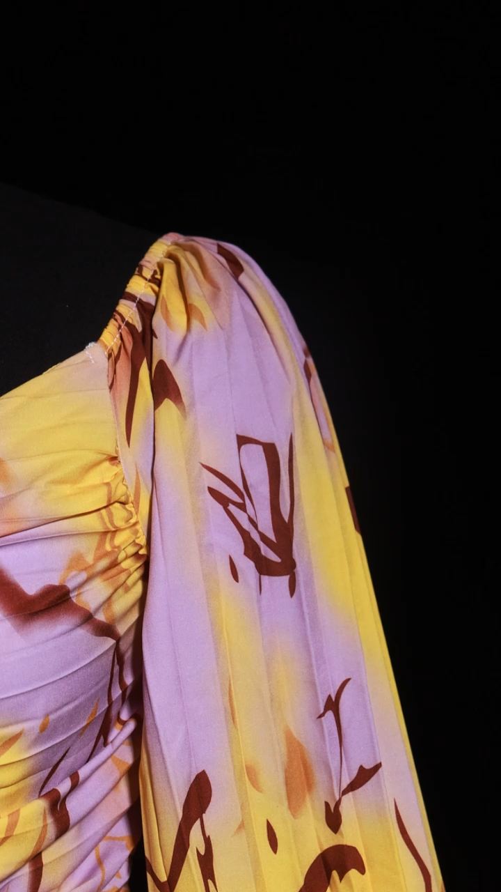 Quanha Diamond Printed Long Sleeves Slit Maxi Dress
