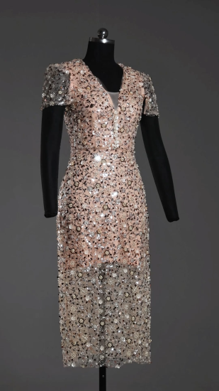 Rafik Short Sleeves V-Neck Diamond Pearl Maxi Dress