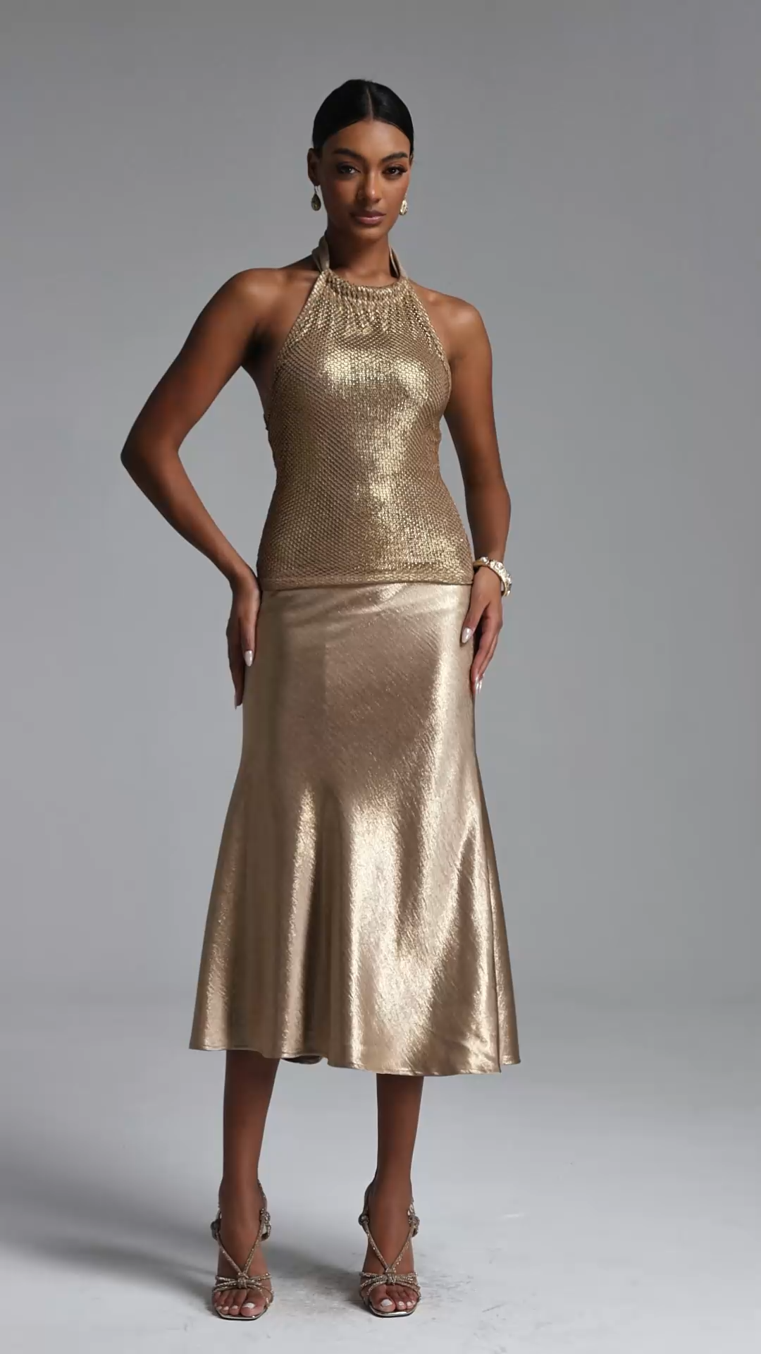 Rosmarie Chic Contour Halter Fishnet Top and Skirt Set