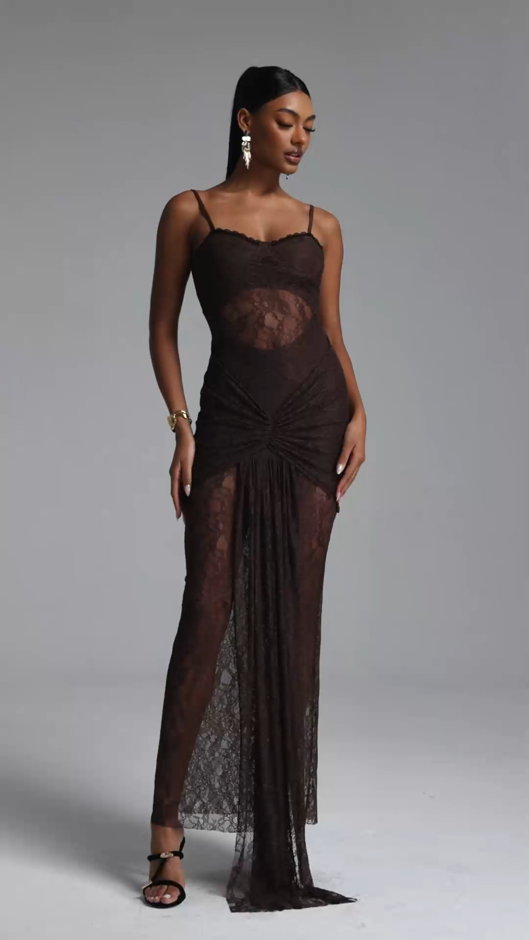 Samiya Chic Contour Cut Out Ruched Lace Maxi Dres