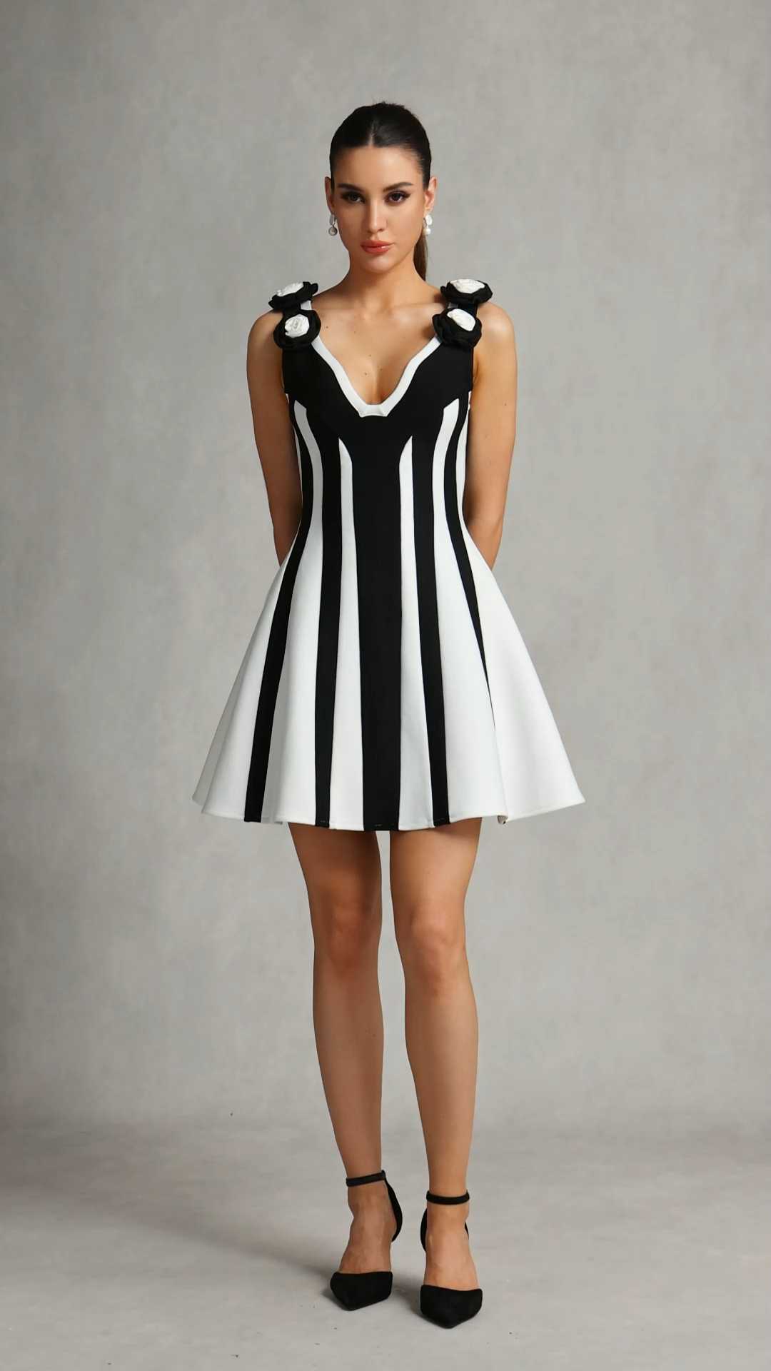 Serela Sleeveless V-Neck Flower Bandage Mini Dress