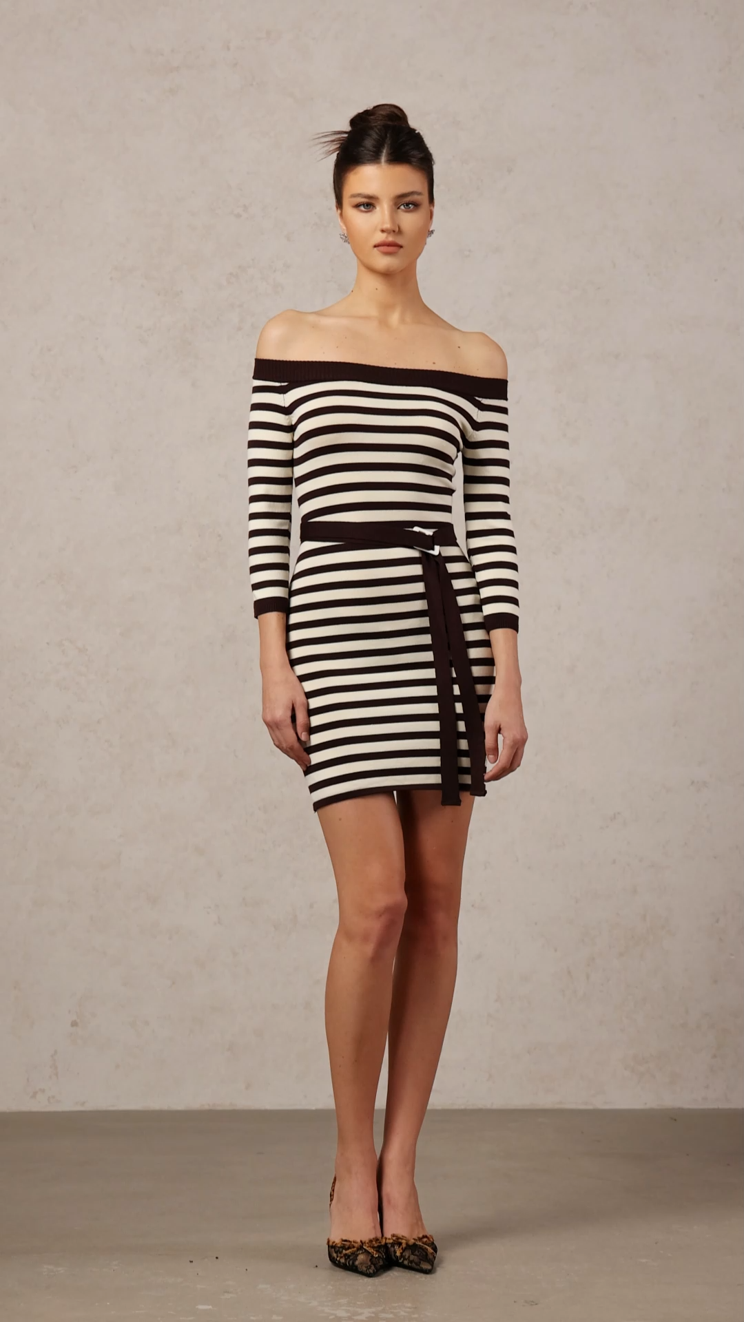 Traci Chic Contour Off Shoulder Long Sleeve Stripe Knit Mini Dress