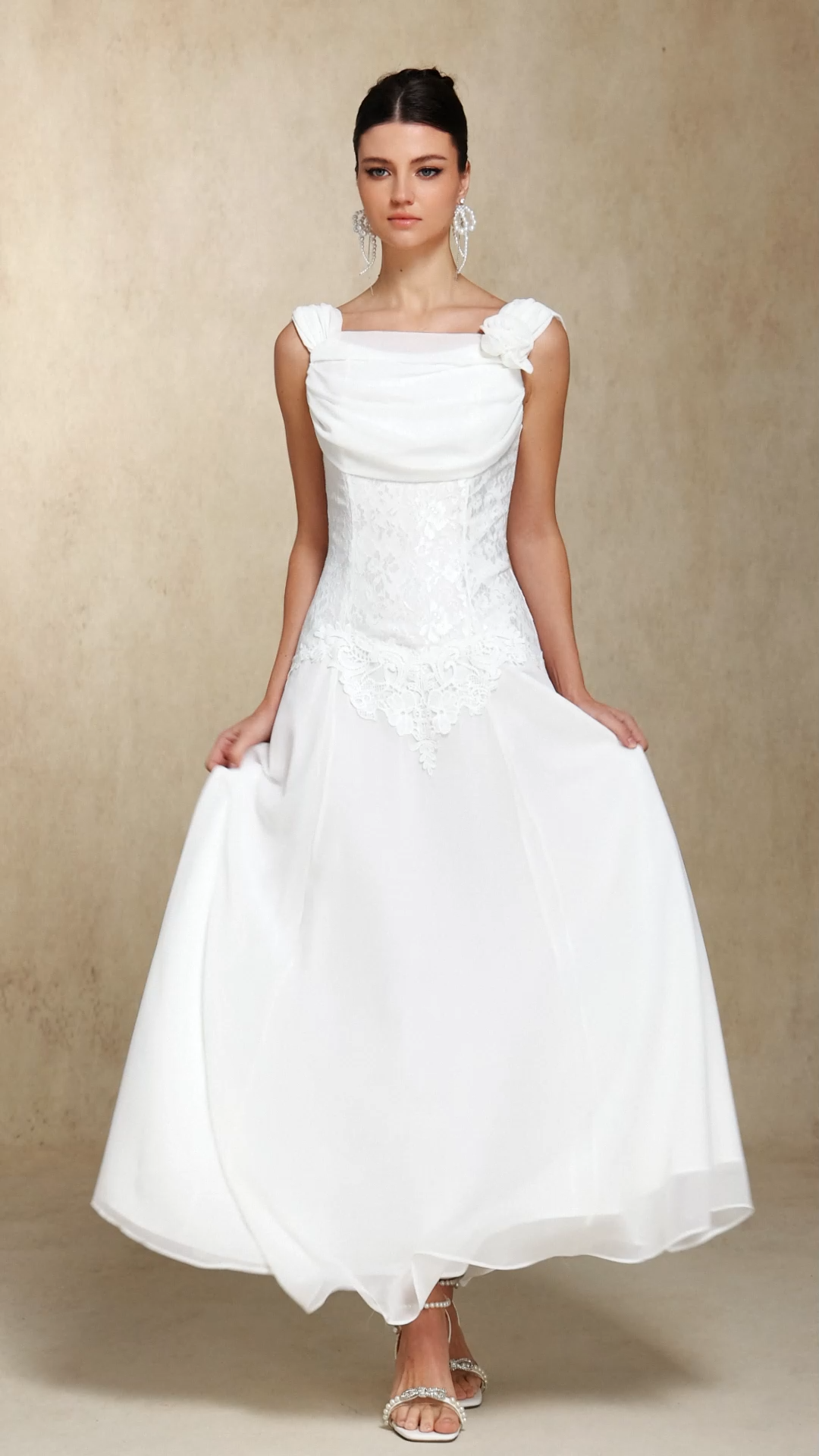 Viki Chiffon Lace Fold maxi dress