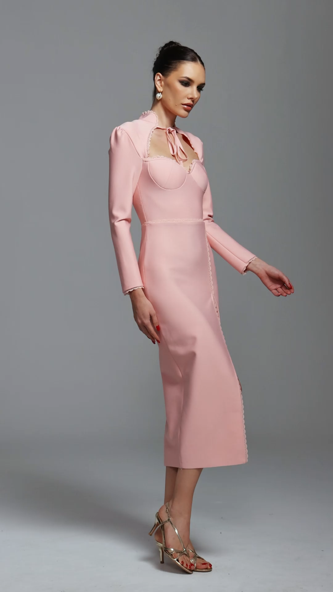 Wenrey Romantic Contour Long Sleeve High Slit Bandage Maxi Dress